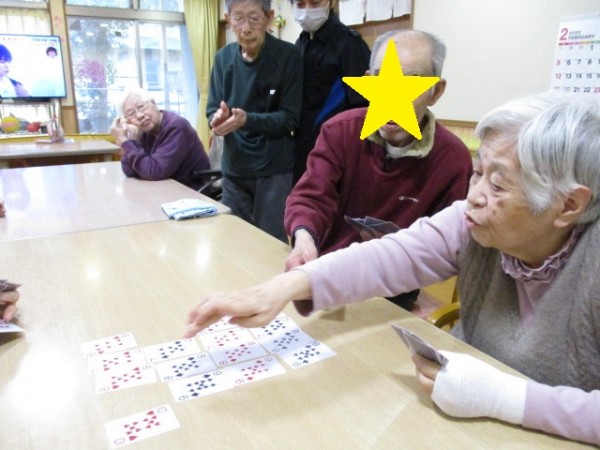 3月のとある日、皆さんとトランプで7並べのゲームを楽しみました((+_+))