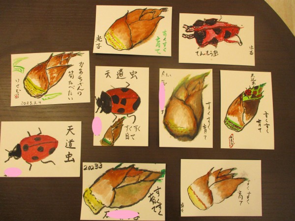 いくつかのお題の中で人気なのは「たけのこ」と「てんとう虫」でした