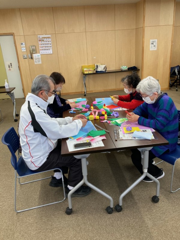 1つ2つ作るうちに覚えて近くの方に教えながら折り進めていく方、折り方が難しく少し苦労されている方など様々でしたが、皆さんなんとか時間内に完成し「良かった~」とホッとされていたご様子でした。