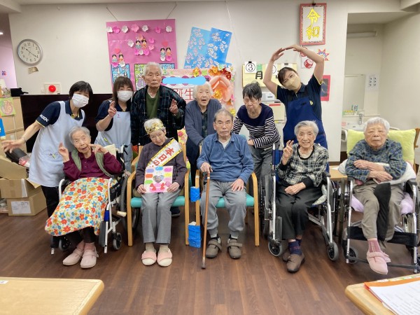 3月14日(火)靖国神社の桜が開花したと発表されました。ホームでもいつお花見に出かけようか??と考えている今日この頃。皆様も桜を見に出かけましたか??みんなの家・殿山北糀谷では近隣の公園はまだ咲いていないため、あともう少し待ってから出かける予定です。今月も誕生日会が開催されました。まずは1階のO様の誕生日会の様子からスタート♡