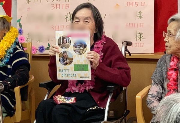 先日の百寿の祝いの日に3月の誕生日会を行いました。3月は100才の方を含めて6名の方が誕生日を迎えられます。