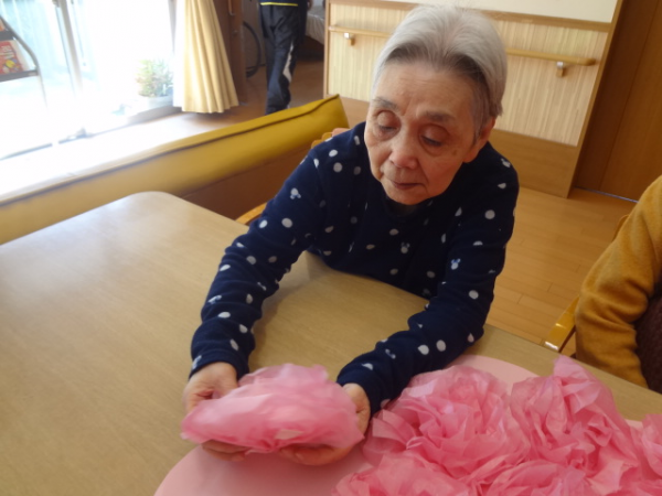 今日は、桜の壁飾りを作っているご様子をお届けします(*^-^*)