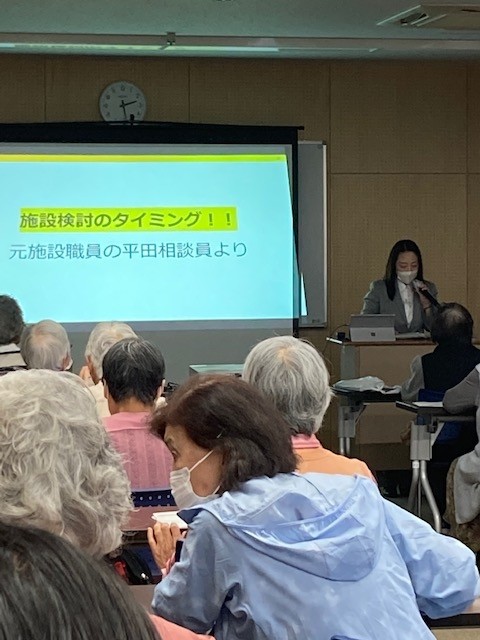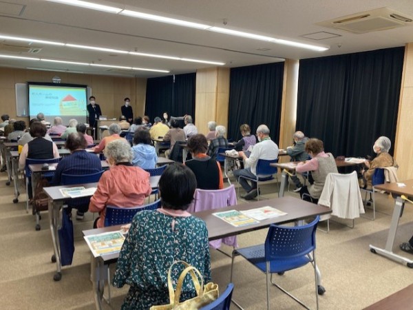 2023.3.22(水)13:30~15:00、総合福祉センター401・402にて、令和4年度第6回元気アップ教室を開催致しました。今回は「老人ホームの基礎知識」というテーマで あいらいふ相談員の谷本様、平田様、内田様にご協力頂き、介護施設の種類や料金、入居までの流れ、入居検討のタイミングについてお話をして頂きました。お話の合間には、音楽に合わせて軽体操の時間も設けて頂きました。ご参加者様もたいへん多く、ご関心の高さが伺えました。