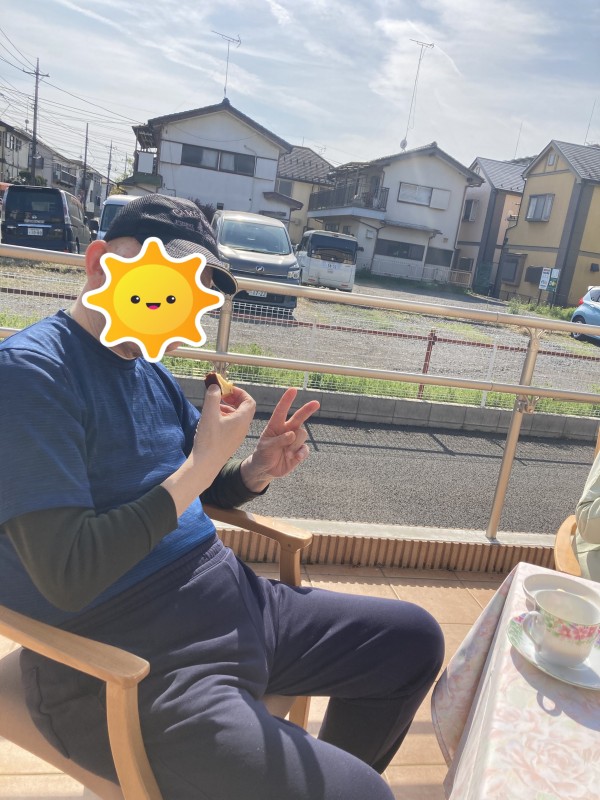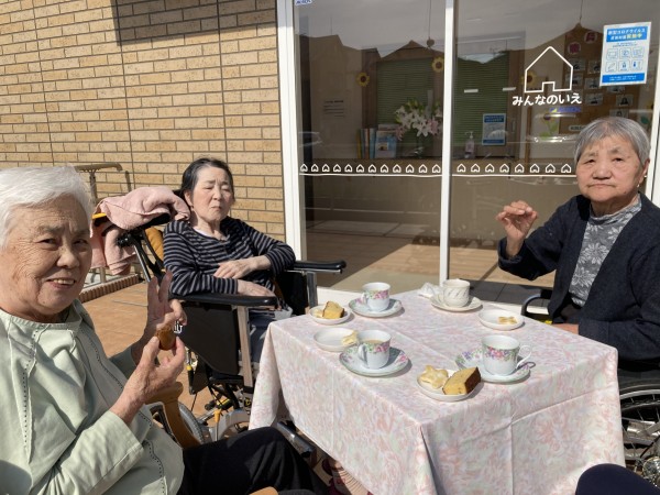 今日は天気が良かったので、施設の外でお茶会を開きました!