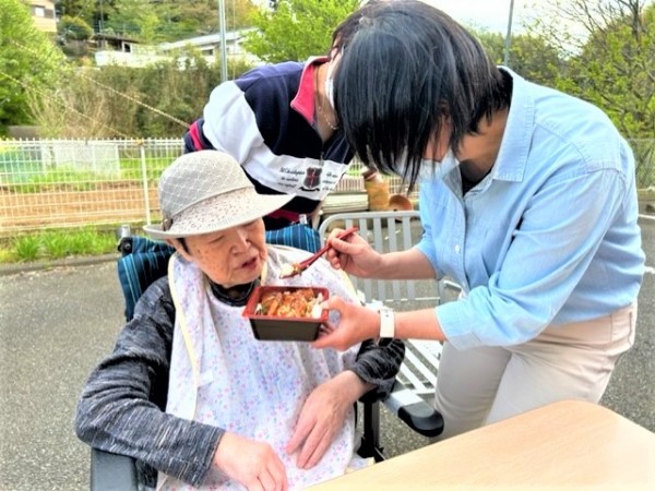 今年も『お花見弁当出前』を企画しましたが、日程が遅れ遅れになってしまい、ホームから見える唯一の桜の花も散ってしまいました。