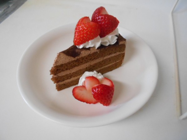 スタッフが盛り付けたケーキを見て「綺麗だね」と