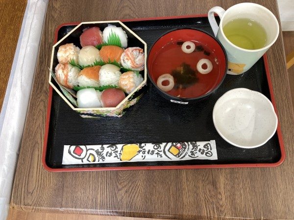 昼食に特別メニューのてまり寿司の様子をお伝えします。