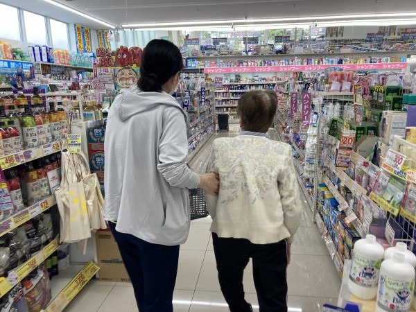 利用者様から「化粧水がなくなっちゃったの」とスタッフに言いに来られ、一緒に買い物へ行きました!