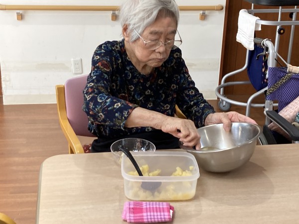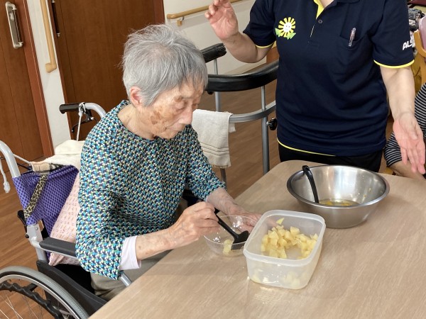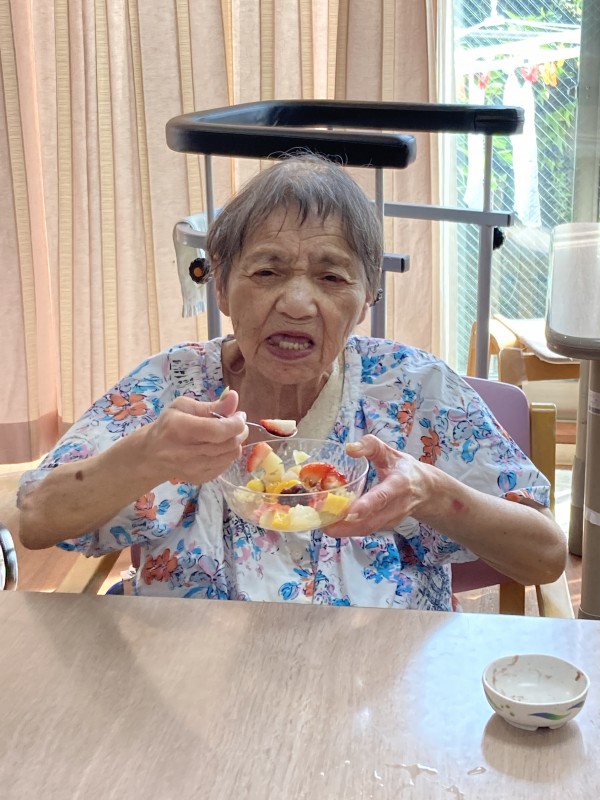 今日は、おやつレクリエーションにて『フルーツいっぱいあんみつ作り』をしました!!!