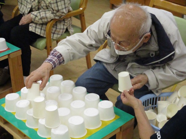 制限時間内に定められた枠内に多くの紙コップを積むのが大変です。焦ってなかなか積めません・・・みんな頑張れ(^O^)/