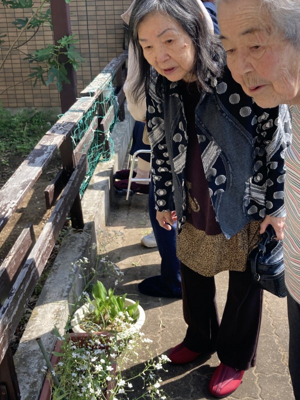 お天気に誘われて皆さんと中庭で外気浴~