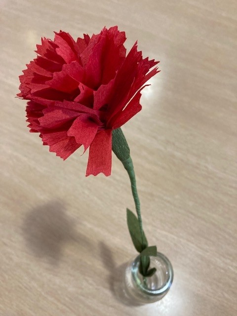 カーネーションを手に