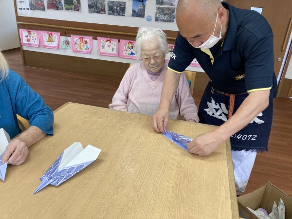 皆さんで紙飛行機を作って飛ばしてみました。盛り上がりました~!!!