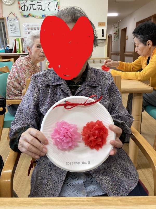5月14日は母の日ということで女性利用者様に母の日の思い出になるように工作をしました。
