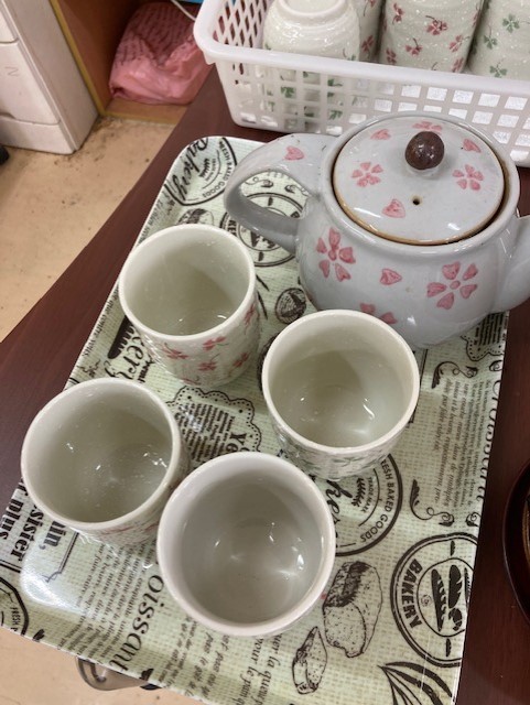 お身体の状況によって取手がついている物も使用し安全にかつ安心して新茶が飲めるよう準備しております!