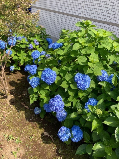 施設の花壇に咲いているアジサイですヾ(@⌒ー⌒@)ノ