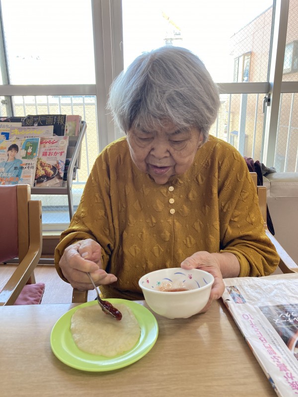 今日のおやつは職員がクレープを焼き、