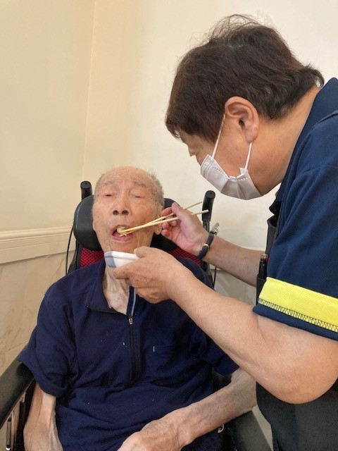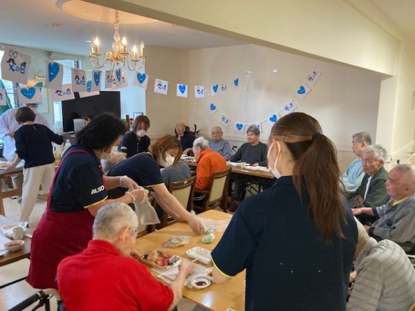 そして介助が必要な方やお代わりをお持ちするケアスタッフの皆さんの働きっぷりをご覧ください