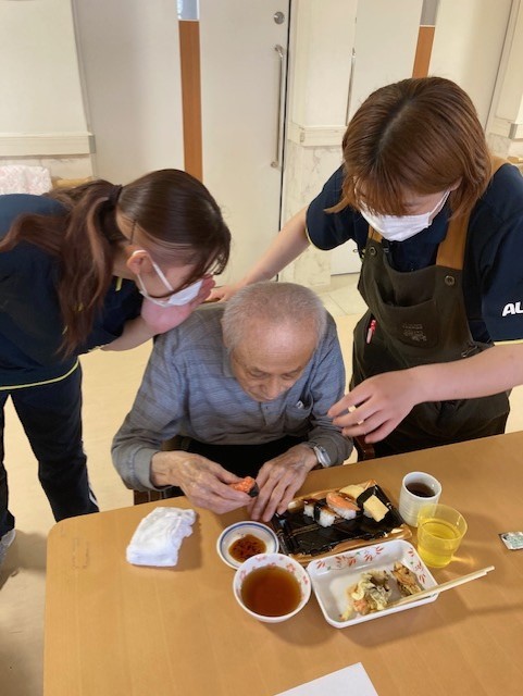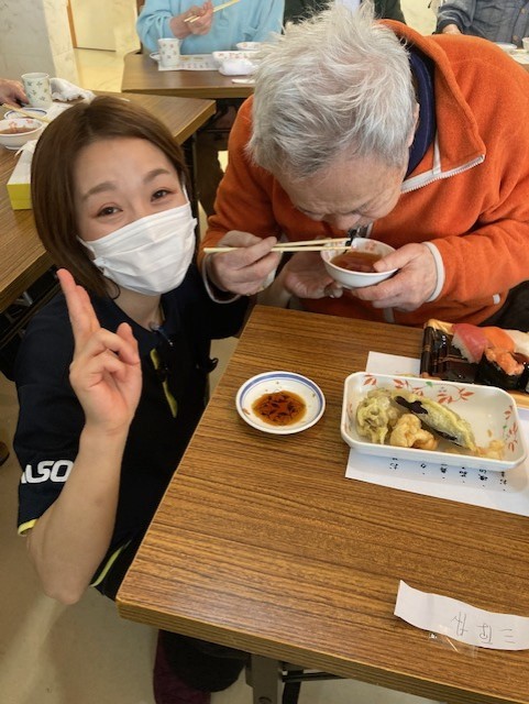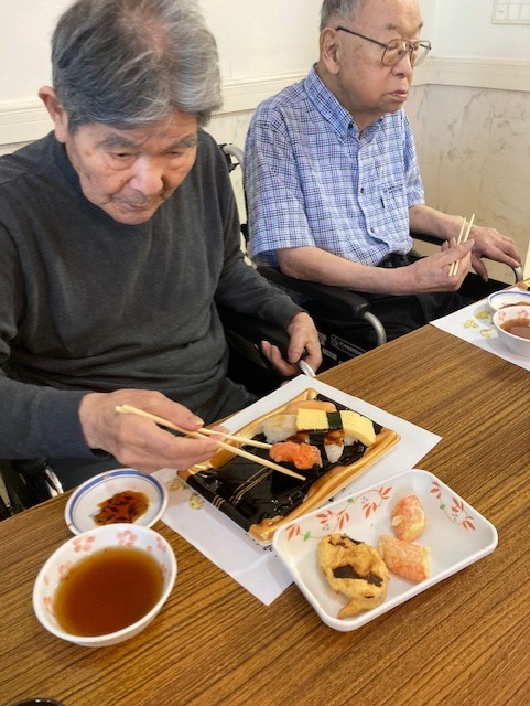 天ぷらとお寿司…なかなか施設では召し上がれる機会ってないんじゃないかな~(=^・^=)