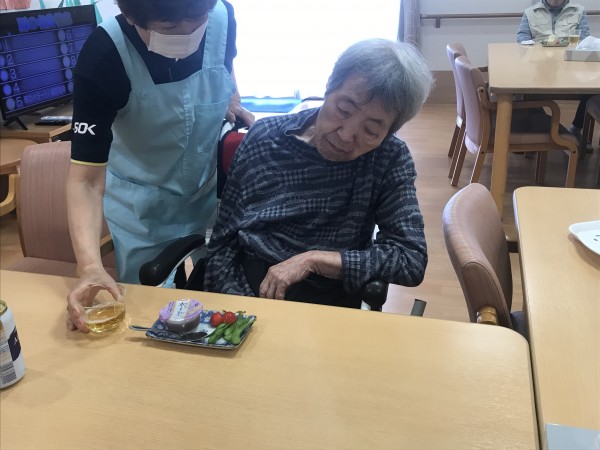 6月18日は父の日でした♪おやつの時間に、ノンアルコールビールやジュースなどの飲み物と、ご家族様から頂いたサクランボや、枝豆、ポテトチップスをお出ししました!並べてみるとパーティーのようで気分が盛り上がりましたね♪この日も暑かったので、冷たい飲み物やおつまみが皆様すすんでいました!「今日は父の日ですね」とお声掛けすると、男性のご利用者様は「そうなんですか~」と反応された後、ドリンクをおかわりされていました♪いつもやさしい笑顔をありがとうございます!