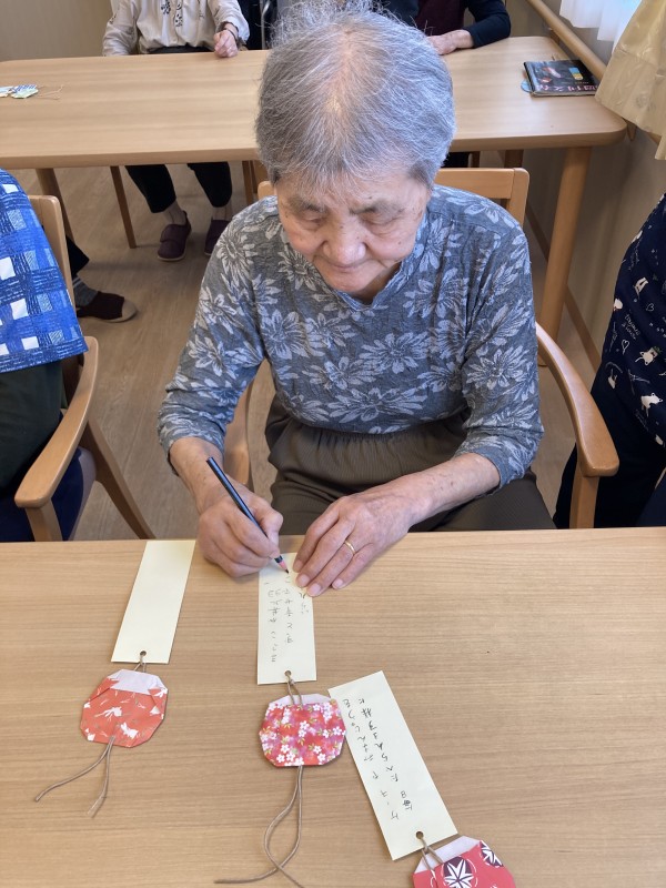 7月7日の七夕に向けて、入居者様達と短冊づくりをしました。