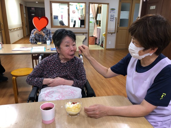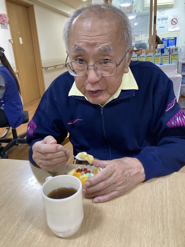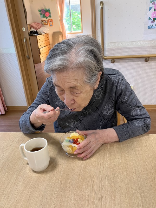 おやつにサプライズで杏仁フルーツを作り提供しました!