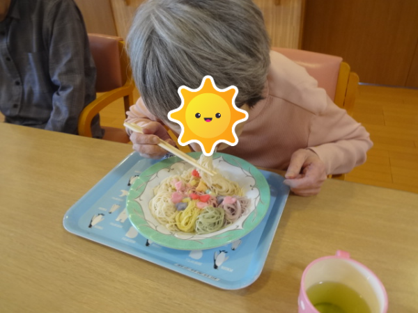 今回は「七夕そうめん」を召し上がっておられるご様子をご覧ください(^^)/