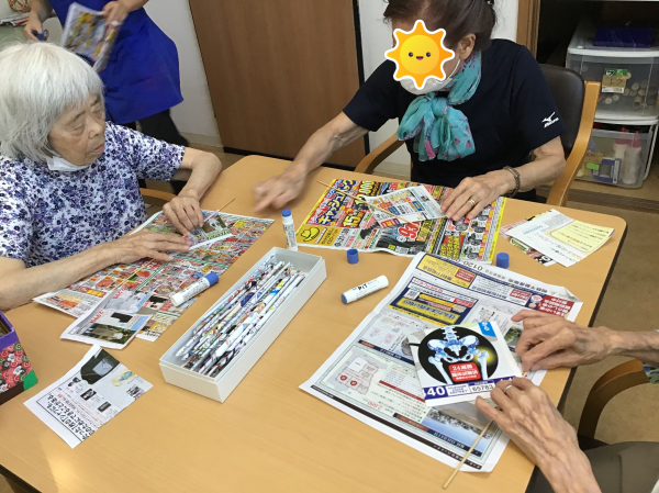 皆さんで協力していただき、何十本ものチラシの棒が出来上がりました。
