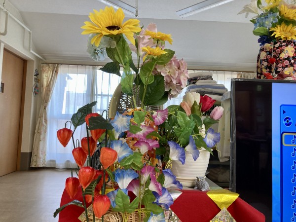 8月のカレンダーのぬり絵やフロアの飾り付けを行いました