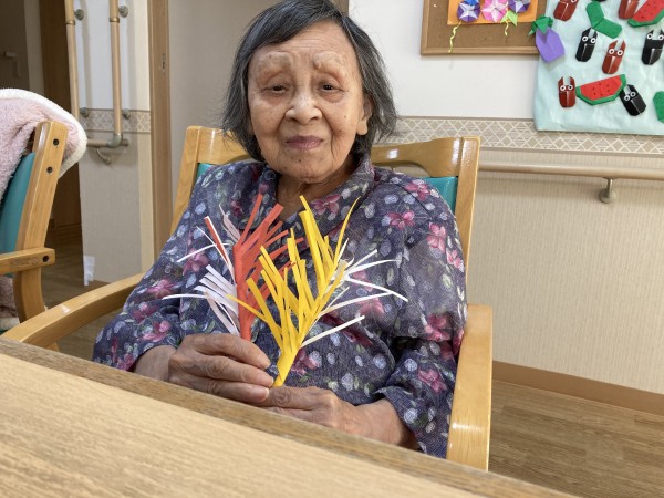 折り紙を使ってススキを作って頂いてます。