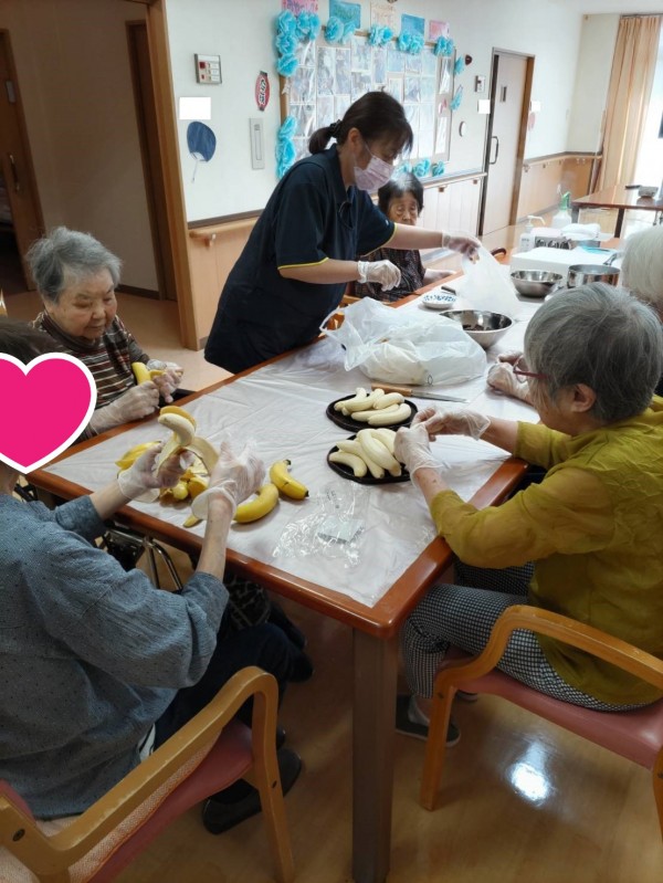 皆さまチョコバナナ一回ぐらいは食べたことあるも、作ったことなどない方ばかり、職員も一昨年ぶりのチャレンジです。