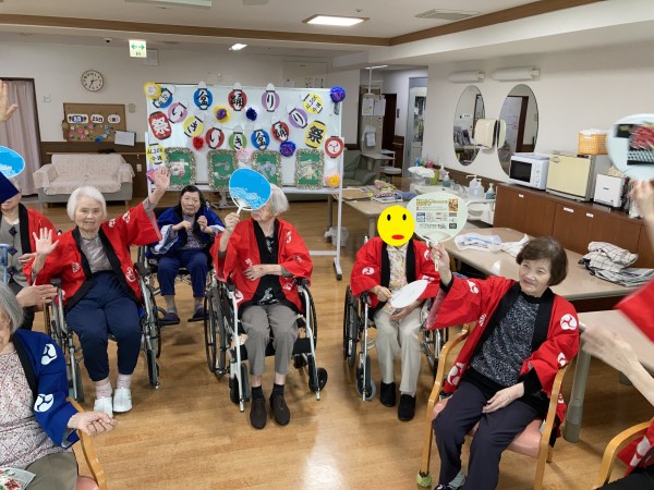 この日の為に利用者様と職員で一緒に盆踊りの飾り付けを作りました‼