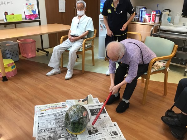 おっきなすいかをいただいたので、すいか割りをしましたっ!!