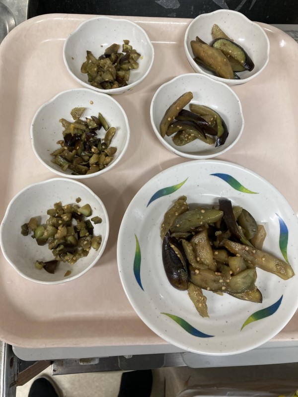 職員が腕を振るって「秋ナスの炒め煮 ゆず風味」