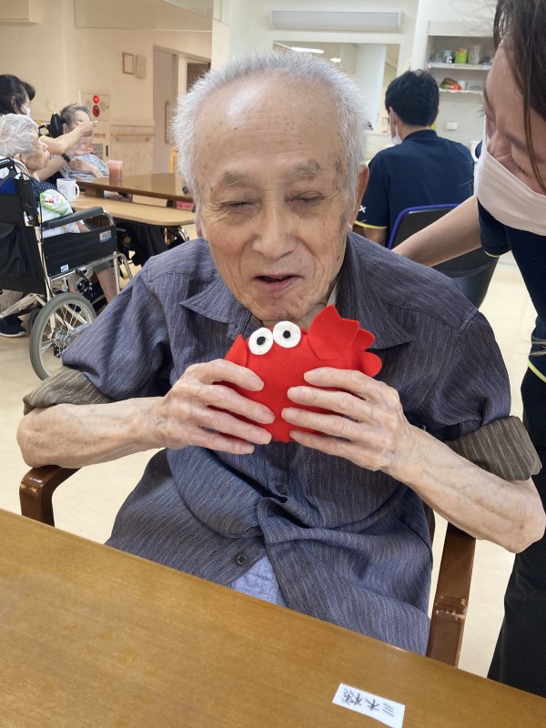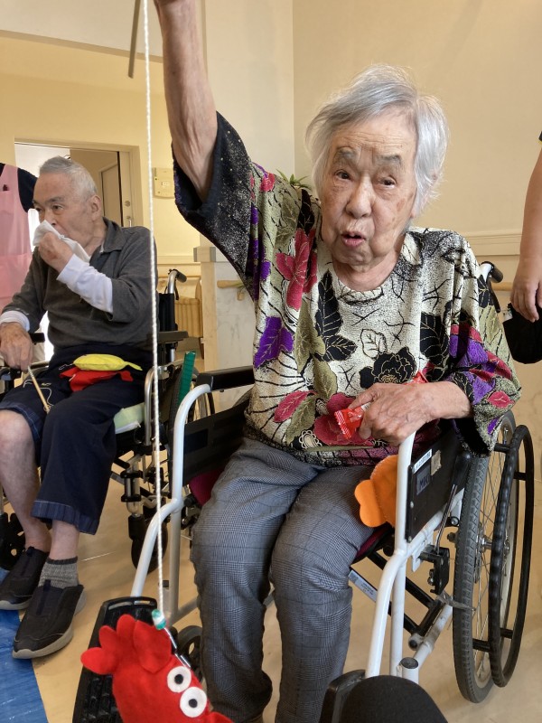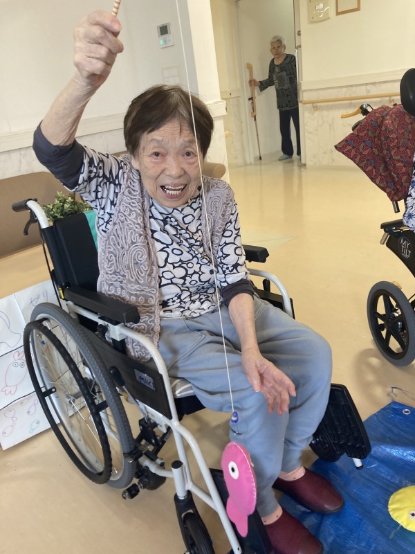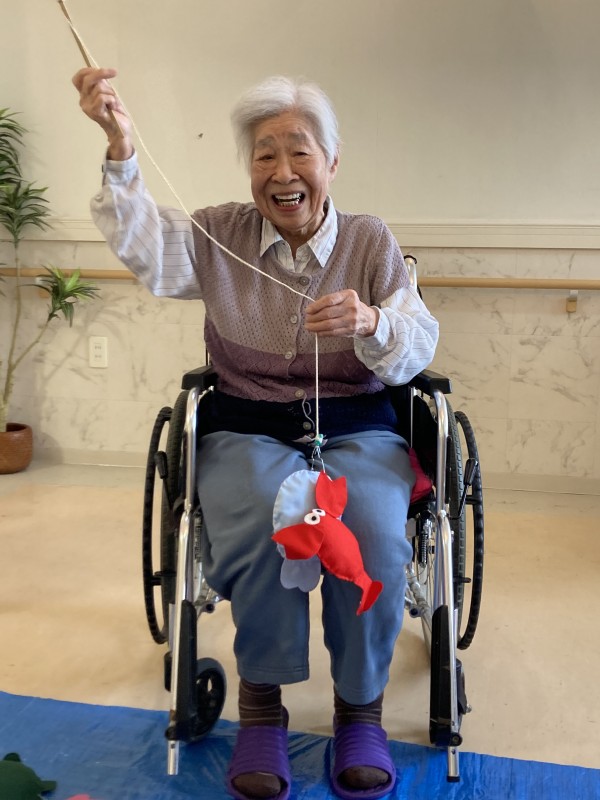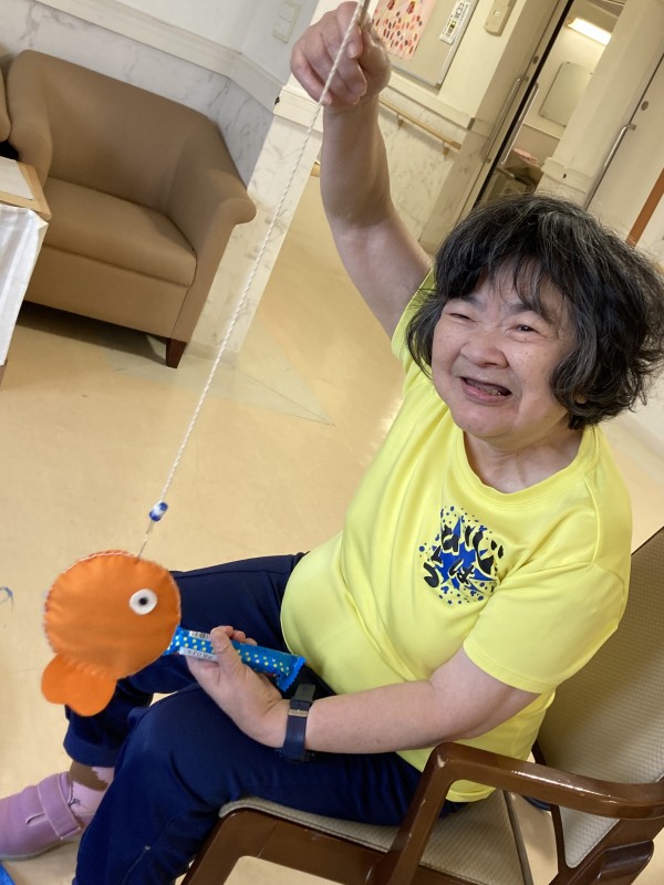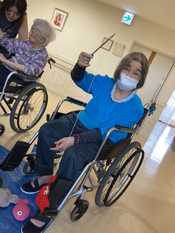 実際にお連れするわけにも行かないので施設でできる魚釣りを楽しんでいただきました。