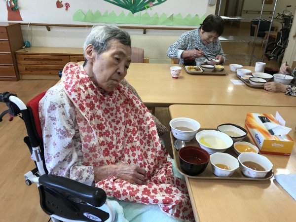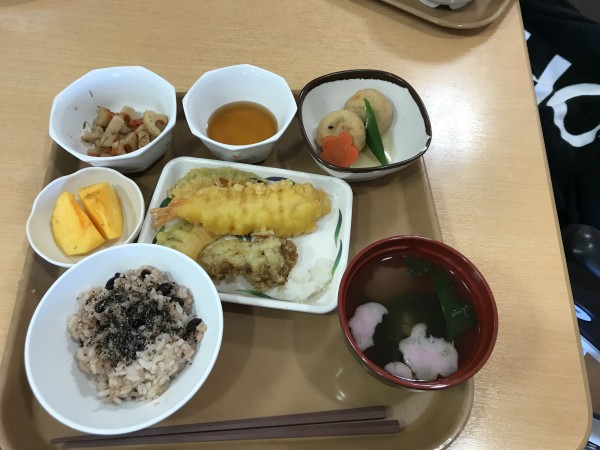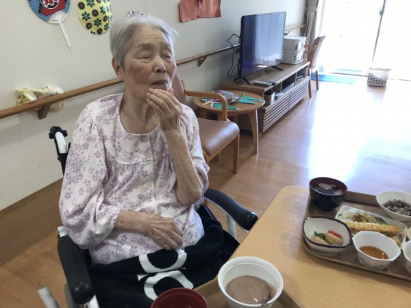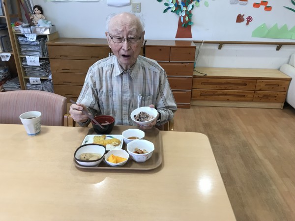 9月18日は敬老の日でしたね♪当日の昼食はお品書き付きの特別メニューでした!内容は、お赤飯、天ぷら盛り合わせ、煮物、清汁、和え物、果物(柿)です!天ぷらがお好きな方が多く、皆様食が進んでいました。