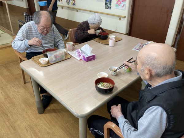 本日の昼食は「月見そば」を召しあがっていただきました。