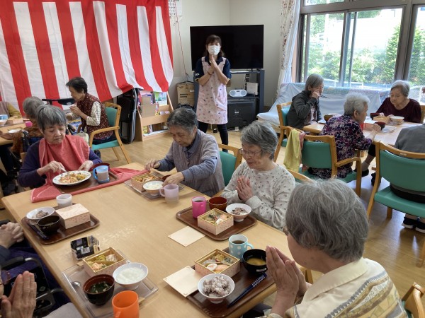今日は、1階と2階のご利用者様が合流してのお食事会です。