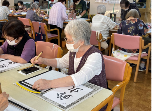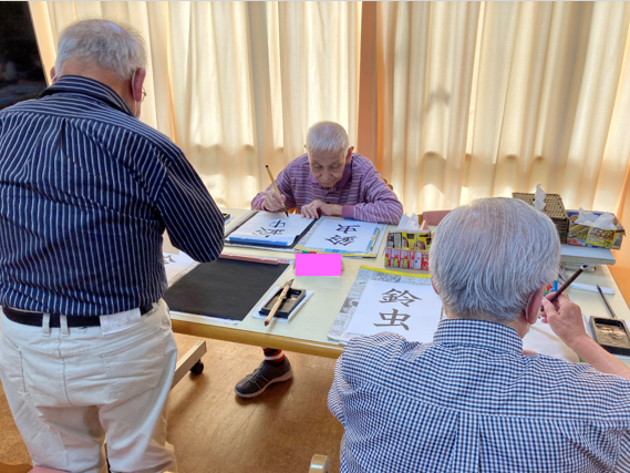 半紙を折っていらっしゃる方もおり、なんで折るのかを伺うと「文字のバランスがとりやすいの」と教えて下さいました(#^.^#)