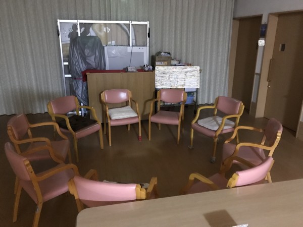 利用者様が就寝された夜間にそおっとテーブルを移動して競技スペースの