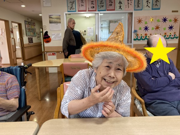 ホームも少しだけ、ハロウィーンの飾り付けをしたので、入居者様もちょこっと変身です。