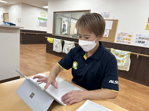 お仕事中に3階のフロアに潜入すると、タブレットで記録を入力中でした☆☆