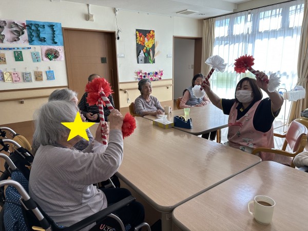運動会前に手作り応援グッズで盛り上げてくれるケアマネージャー☆