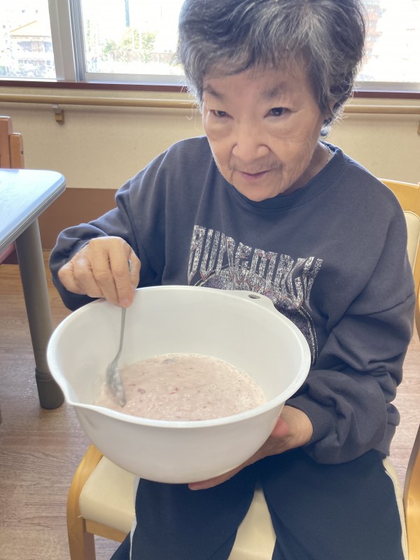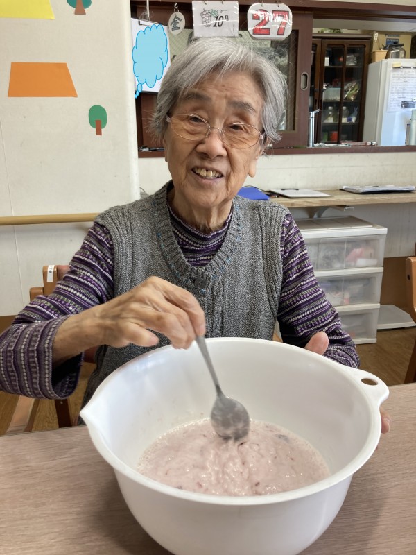 3階ご利用者様にお手伝いいただいた、おやつ作りのご様子です。