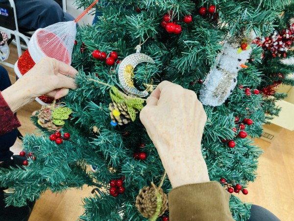 1階のご利用者様にお手伝いいただいて急遽ツリーの飾り付けをしました☆