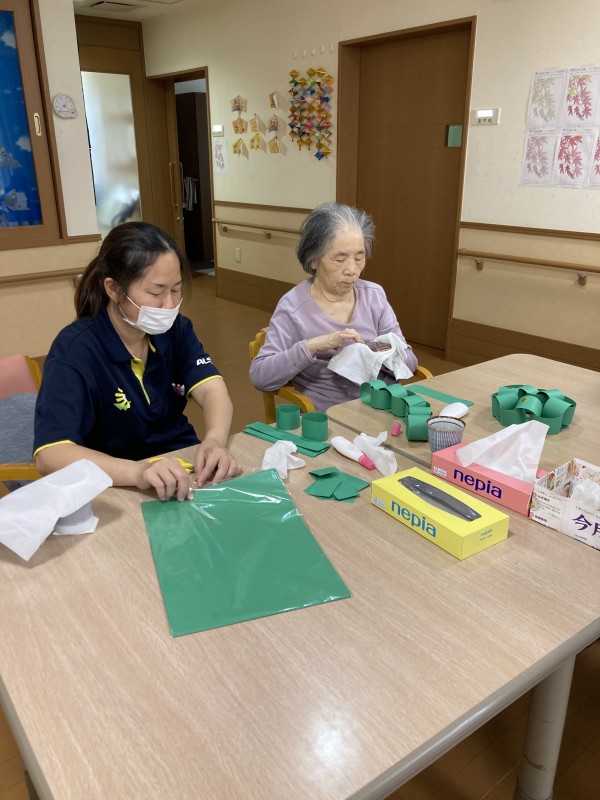 皆さんで、1階リビング飾り付け物の作成です(*^▽^*)