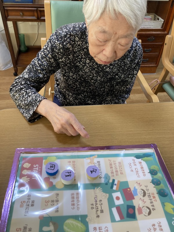 こんにちは! グループホームみんなの家・川崎野川南台です! すごろくを振って手の運動をしましょう!