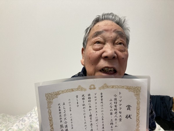★☆トップアクセス賞で表彰♪優秀な成績を収められたので、ここに賞します2023年✨ 『みんなの家-三橋6丁目-介護ブログ』☆★