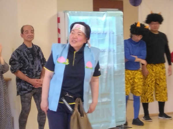 職員による劇「桃太郎????」を披露しました(^_-)-☆