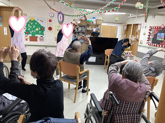 みんなで体操をして